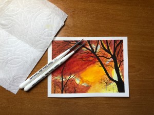 This was painting on 140 lb Canson watercolor paper, cold pressed. Holbein watercolors and Silver paint brushes.