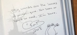 micro poem · Writing Bare 2018-07-192020-11-22 CandyH2O My words are the leaves of winter: gone. Not seen or heard or read. I’m bare. Share this: Click to share on X (Opens in new window) X Click to share on Facebook (Opens in new window) Facebook Like Loading... Related Published by CandyH2O Author/Writer, FreeThinker, Veteran 🇺🇸 USN Intelligence, Warrior, Dog lover, and just for fun, Watercolorist (hobby). View all posts by CandyH2O Share this: Click to share on X (Opens in new window) X Click to share on Facebook (Opens in new window) Facebook Like Loading...