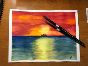 I was determined to get one decent ocean painting with blended colors in the sky and ocean that look pretty good. Ok, so it’s not perfect but I’m somewhat happy with this one.