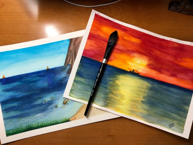 This ocean view with a fisherman on the horizon was supposed to be simple and easy. Maybe I’m having a bad day? Yeah, let’s go with that. Anyway, the paints look choppy and unrefined, soooo more practice.