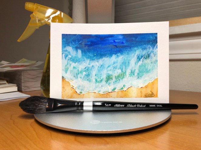 This was painted on 140 lb cold press watercolor paper and painted with Holbein Watercolors (as shown in the image below), and Silver Black Velvet Limited brushes (of various sizes).