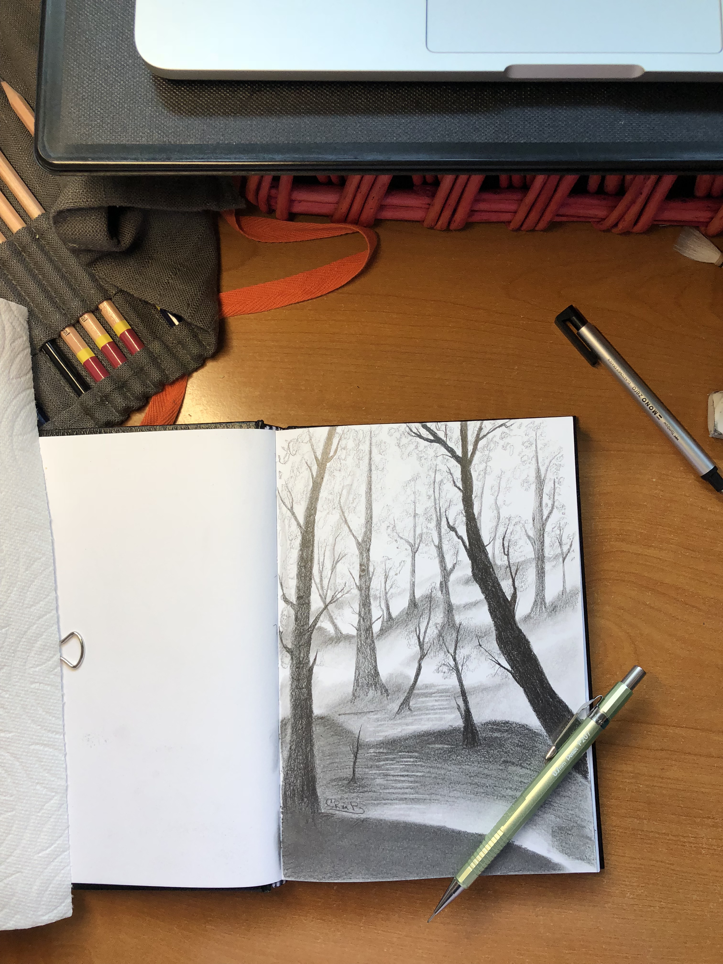 Thes were studies of a forest scene and a river. So hey, if you sketch or create art, drop me a note/comment to say hello and tell me what type of art you create.
