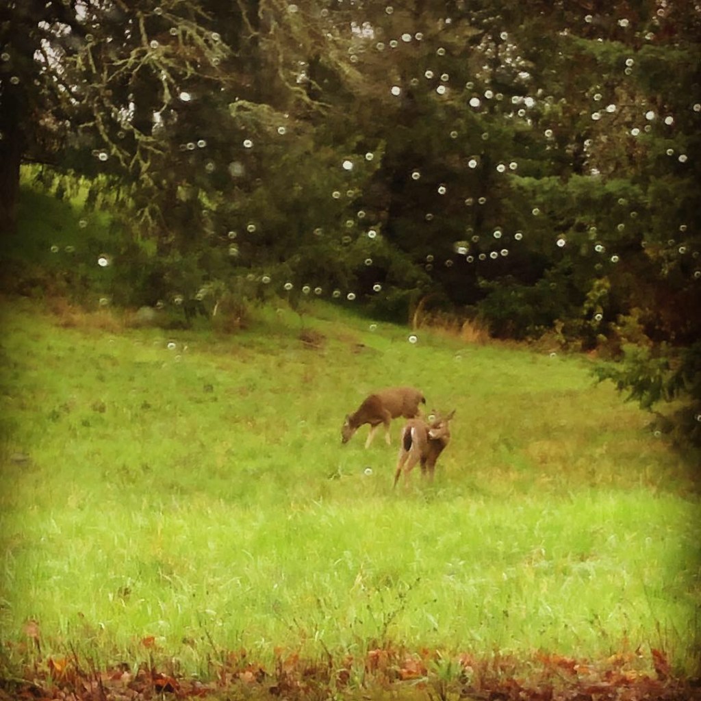 About five days ago we were driving home (as we do) and passed this nearby open field; when we glanced over, we saw these precious creatures. It wasn’t safe to stop on this road or I would have for better (clearer) photos of these deer and fawn. My daughter, however, was able to capture these images after I slowed down a bit. Aren’t they beautiful?!