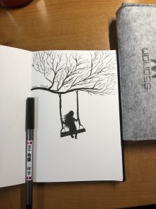 The tree branch & swing was just for fun; and if I get the chance to redo this sketch, I’ll take more time with the rope on the swings because these were way too thick. Right?! Yeah.