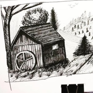 These are the two very quick sketches for this week and both were created with Micron pens and a brush pen. They were studies for a simple review of lines on the landscape. In other words, practice.