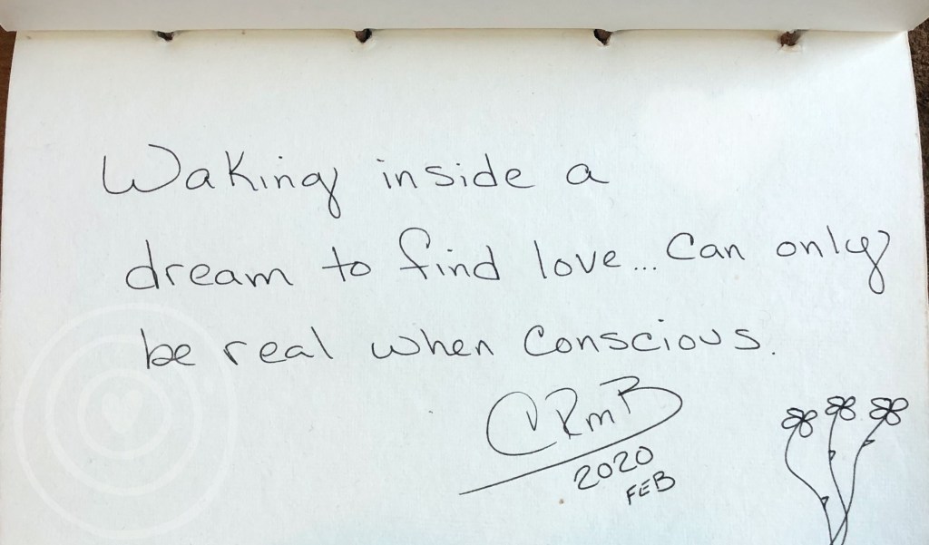 Love · micro poem Conscious 2020-02-242020-11-22 CandyH2O Waking inside a dream to find love…can only be real when conscious. Share this: Share on X (Opens in new window) X Share on Facebook (Opens in new window) Facebook Like Loading... Related Published by CandyH2O Author/Writer, FreeThinker, Veteran 🇺🇸 USN Intelligence, Warrior, Dog lover, and just for fun, Watercolorist (hobby). View all posts by CandyH2O Share this: Share on X (Opens in new window) X Share on Facebook (Opens in new window) Facebook Like Loading...