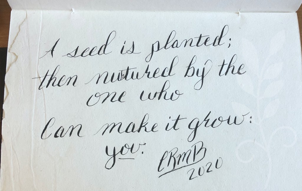 Life · micro poem The One 2020-06-112020-11-22 CandyH2O A seed is planted; then nurtured by the one who can make it grow: you. Share this: Click to share on X (Opens in new window) X Click to share on Facebook (Opens in new window) Facebook Like Loading... Related Published by CandyH2O Author/Writer, FreeThinker, Veteran 🇺🇸 USN Intelligence, Warrior, Dog lover, and just for fun, Watercolorist (hobby). View all posts by CandyH2O Share this: Click to share on X (Opens in new window) X Click to share on Facebook (Opens in new window) Facebook Like Loading...
