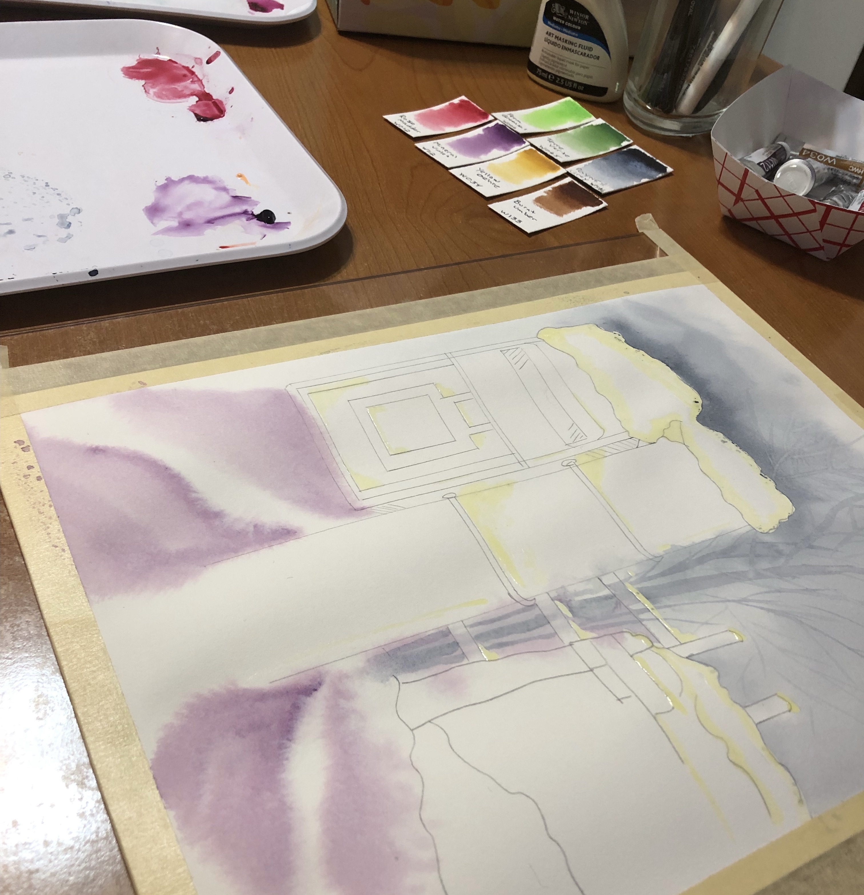 This painting is another one from Matthew Palmer’s online workshops. It was a lot of fun to do but I did have trouble with depth as well as creating clean lines on the letters (on the mailbox). You can find more information on Matthew at his website: www dot watercolour dot tv.