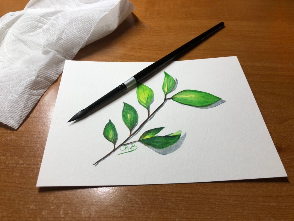 This was painted on 140 lb watercolor paper. Holbein Watercolors: Prussian Blue Chinese White Ivory Black Perm Green No. 2 Perm Yellow Lemon Burnt Sienna Burnt Umer Silver Limited Brushes: Silver Ultra Mini 12/0 Silver Black Velvet 6 Silver Black Velvet 8 Silver Golden Natural 0 This is a lovely tutorial from an artist on… Continue reading Watercolor – Green Leaves