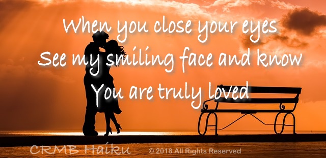 When you close your eyes See my smiling face and know You are truly loved. Remember, your Valentine can be any day of the year. Share moments with them, remind them of your adoration and surprise them with little poems now and then.